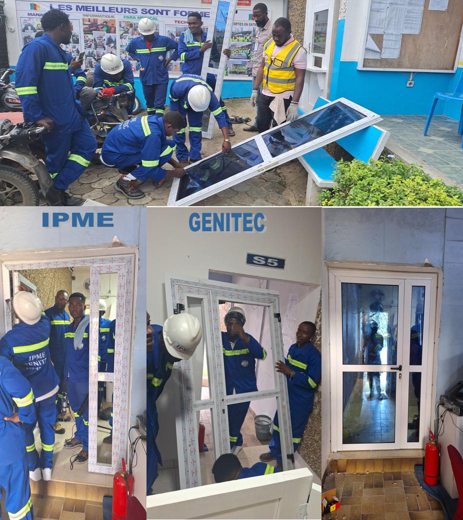 La menuiserie aluminium est une activité de conception à base d’alluminium et vitre qui permet à l’apprenant futur technicien d’exercer dans le cadre de son activité l’encadrement de fenêtre, portes, palcard en matériaux aluminium.Il prend commande chez ses client, relève les mesures sur le terrain, realise la structure en atelier et se charge de l’assemblage et l’installation chez le client.